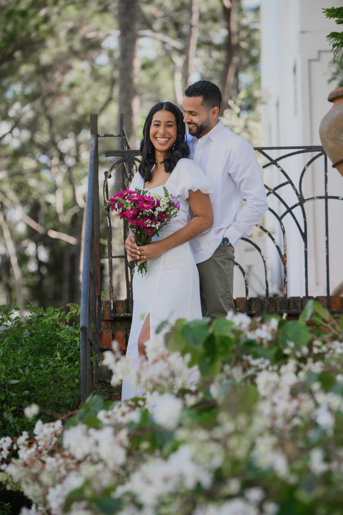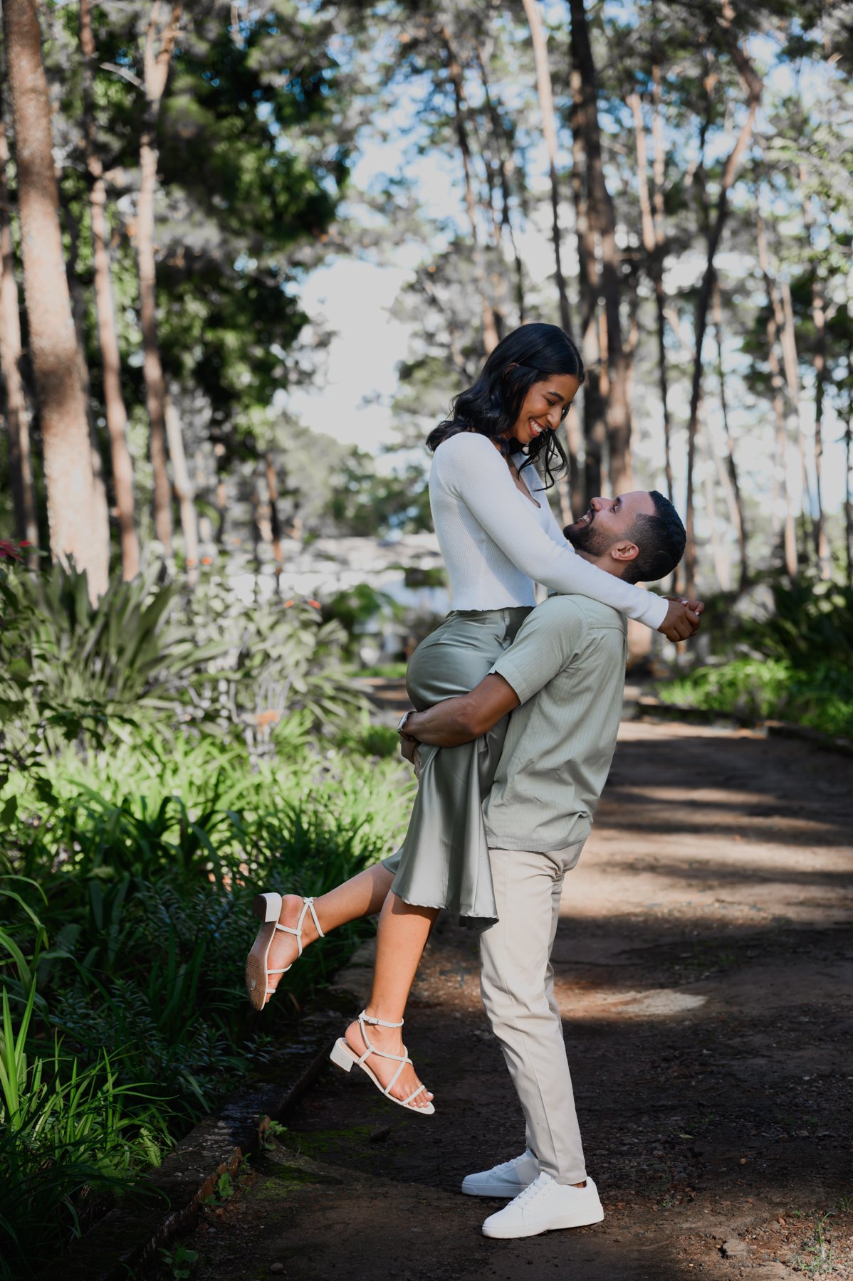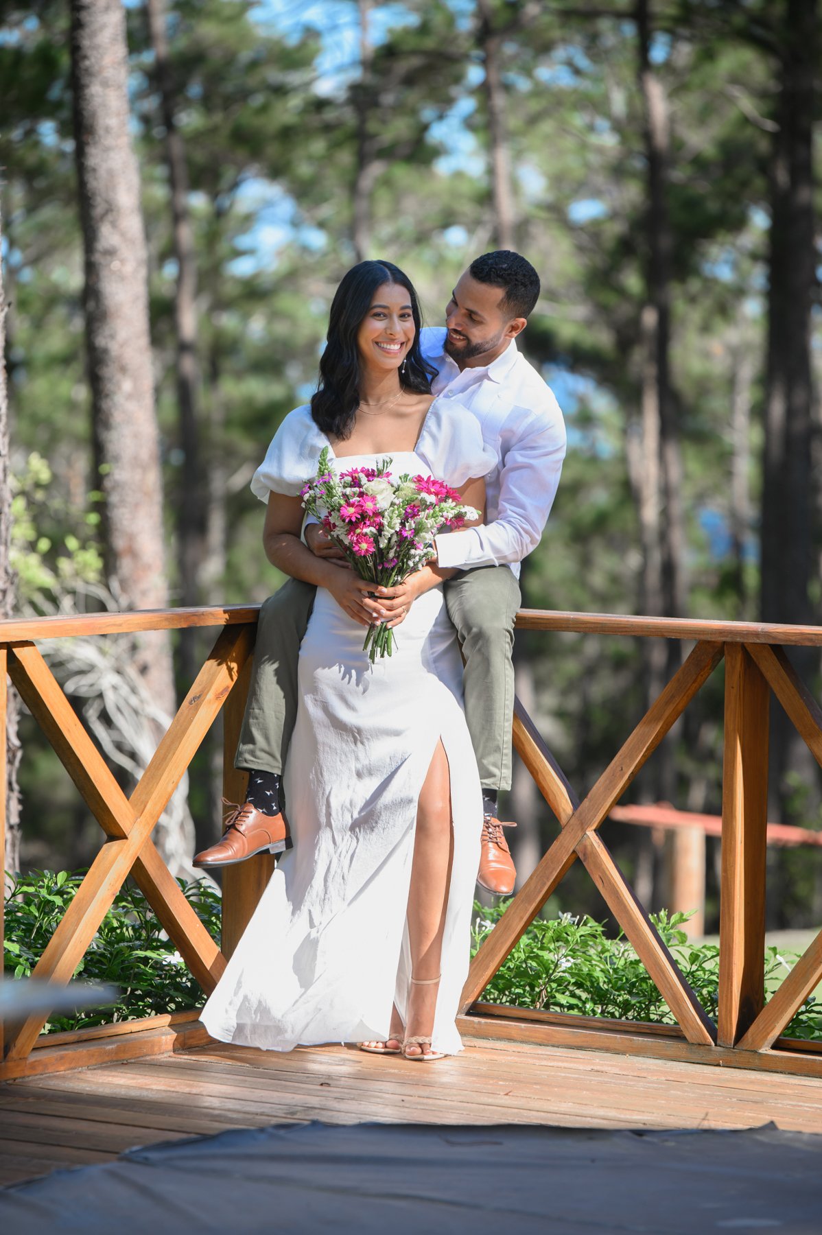 Nuestro destino fue el encantador Jardín Cara al Viento, un espacio lleno de vida, flores coloridas y vistas impresionantes a las montañas. Allí se desarrolló esta sesión fotográfica, inspirada en la armonía entre el ser humano y la naturaleza. Cada rincón del jardín ofrecía un escenario perfecto: la brisa suave, la luz filtrándose entre los árboles creaban una atmósfera mágica, ideal para capturar momentos inolvidables.