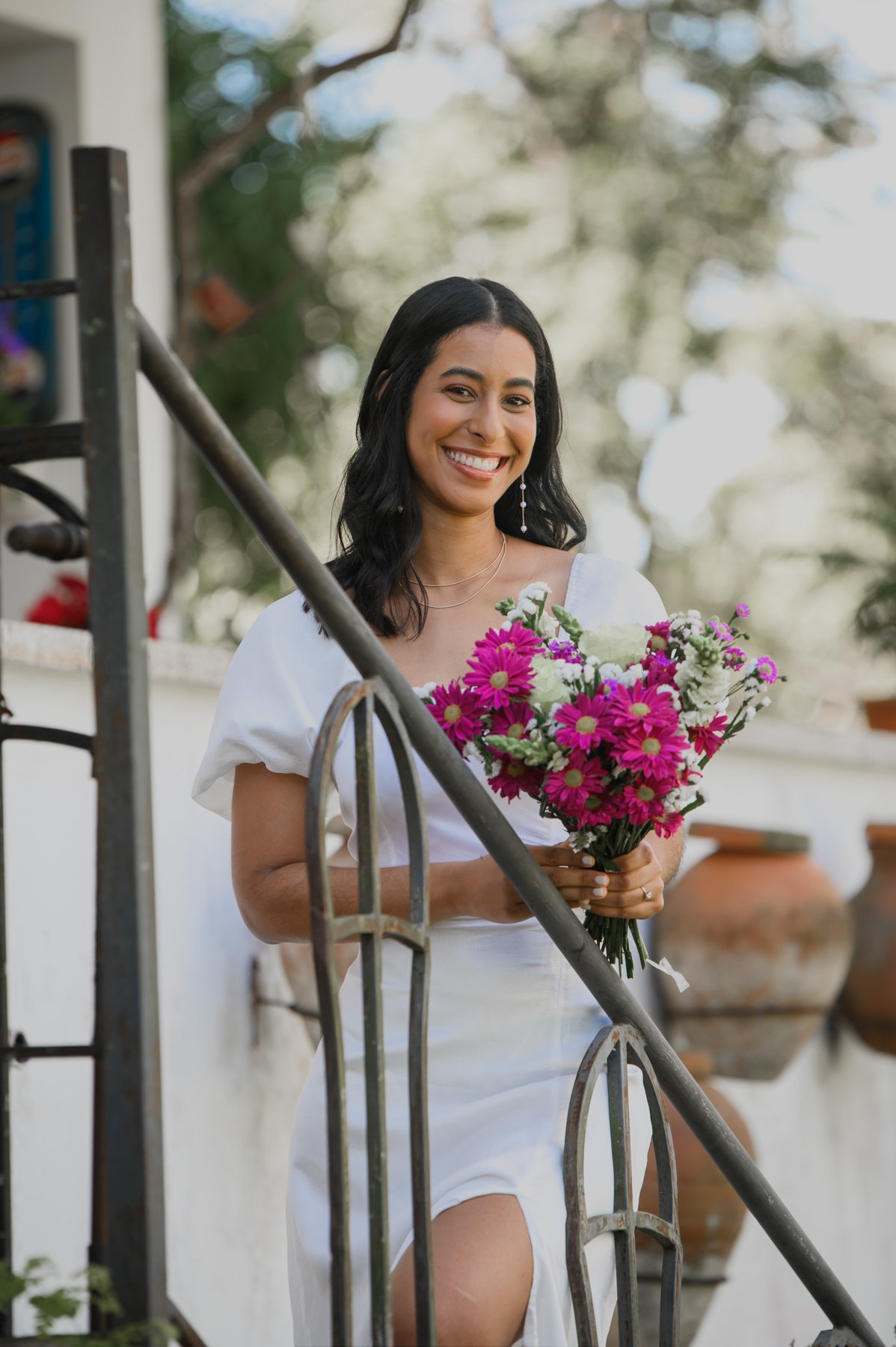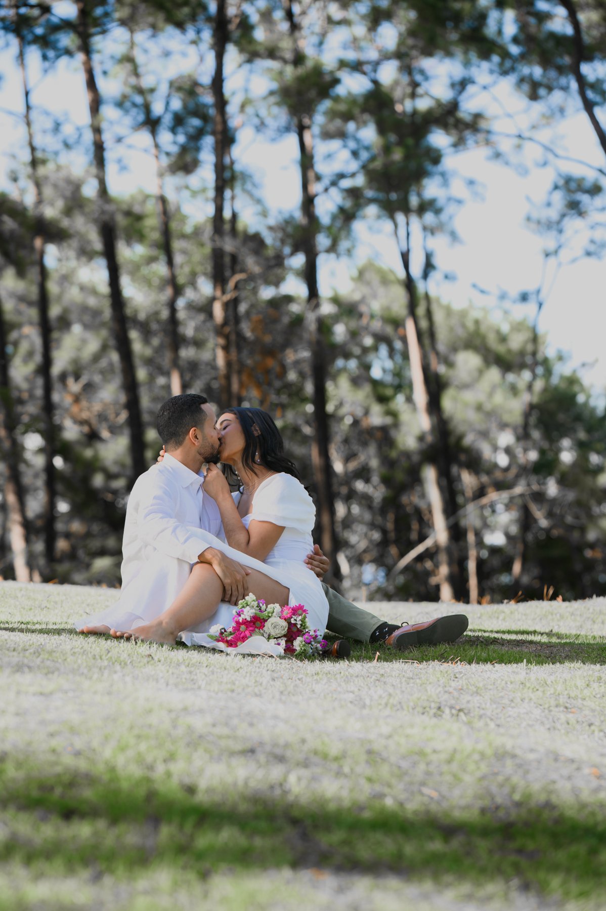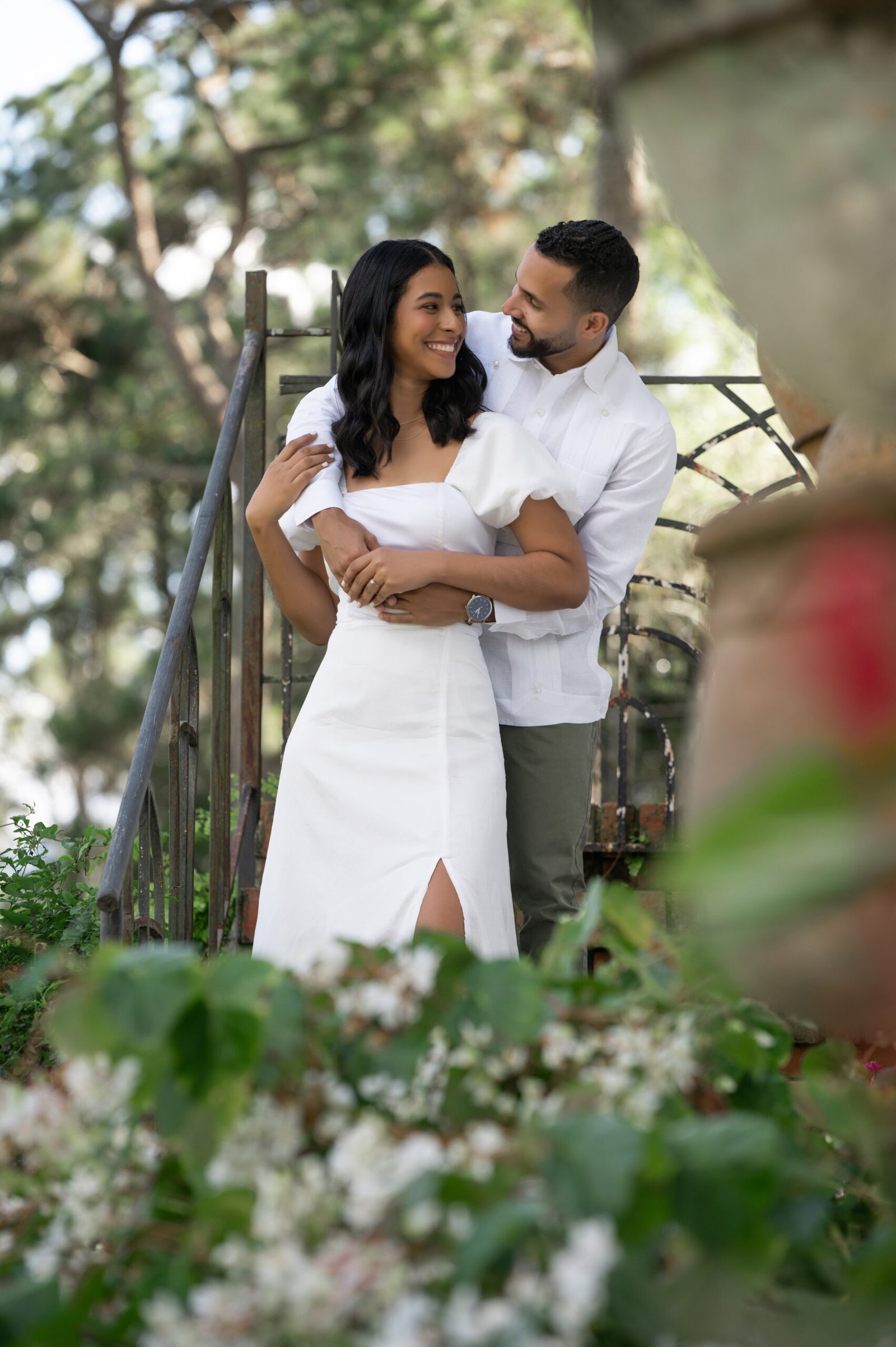 Nuestro destino fue el encantador Jardín Cara al Viento, un espacio lleno de vida, flores coloridas y vistas impresionantes a las montañas. Allí se desarrolló esta sesión fotográfica, inspirada en la armonía entre el ser humano y la naturaleza. Cada rincón del jardín ofrecía un escenario perfecto: la brisa suave, la luz filtrándose entre los árboles creaban una atmósfera mágica, ideal para capturar momentos inolvidables.